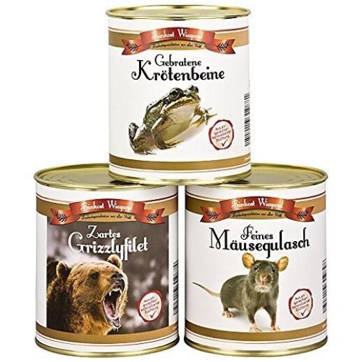 Krötenbeine, Mäusegulasch und Grizzlyfilet – Scherzartikel aus der Dose: Nimm das Weihnachtsfest als Anlass, um Deinen Bruder, Deinen Schwiegervater oder Kumpel mal wieder ordentlich auf die Schippe zu nehmen!